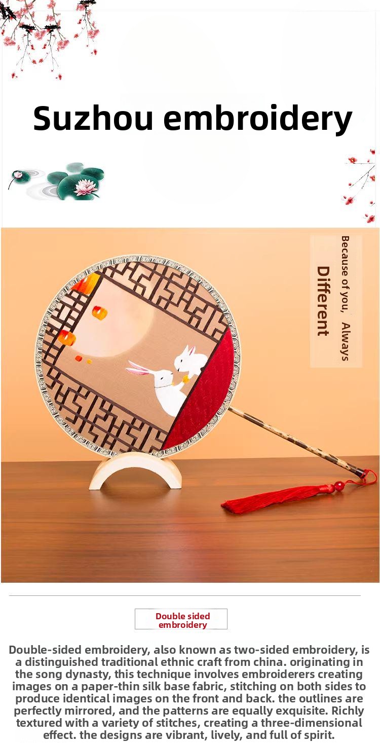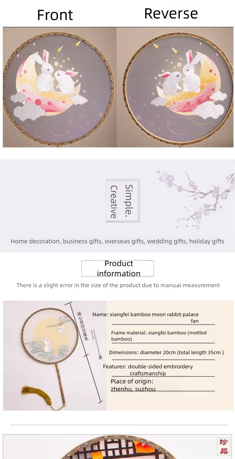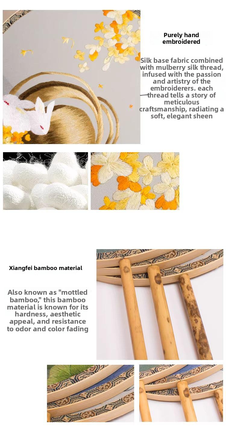 Hand Embroidered Moon Rabbit Palace Fan Hand Embroidered Moon Rabbit Palace Fan