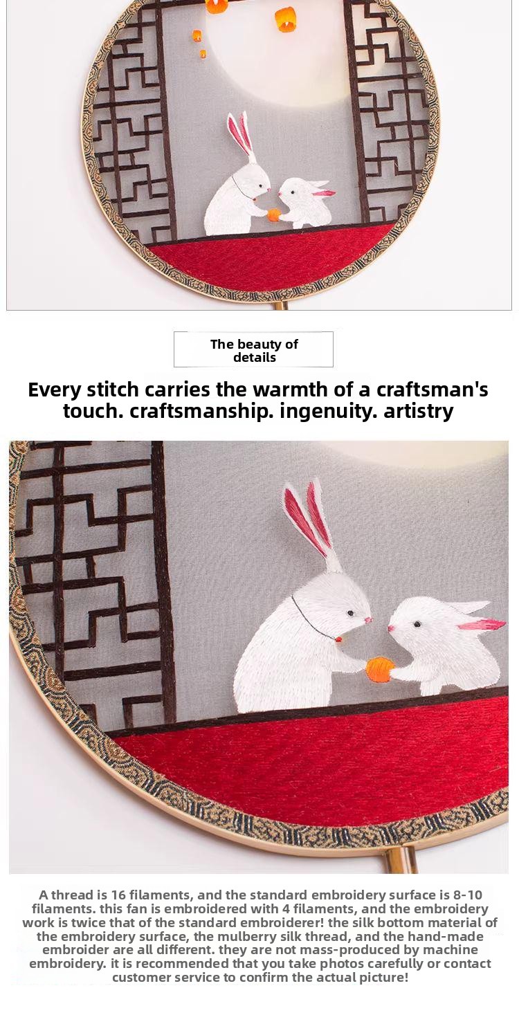 Hand Embroidered Moon Rabbit Palace Fan